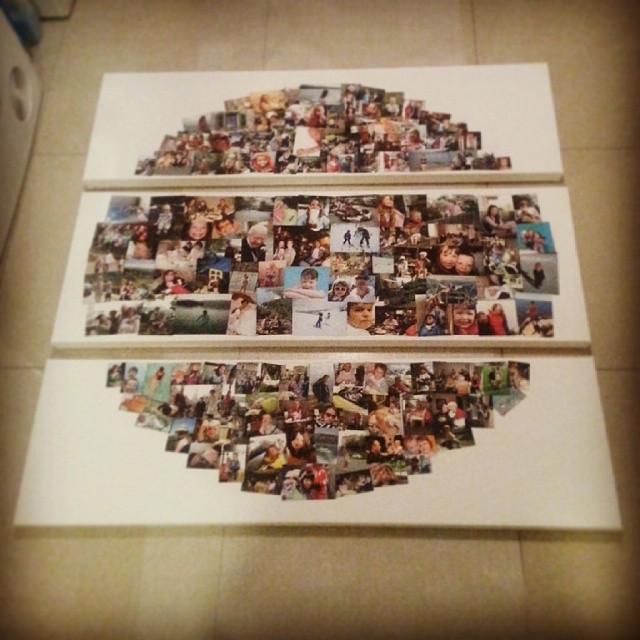 Here's an example of a very different collage as requested by a customer recently which I loved the results of. Its a three piece photo collage canvas total size of 48x48 inches (with the gaps). The customer requested a circular shaped frame which we don't do, so we designed a circular collage on a square canvas split over three pieces. this was the alternative. We even took into account the spaces to make sure that once it's hung its a perfect square with a perfect circle. Total of 170 photos used.